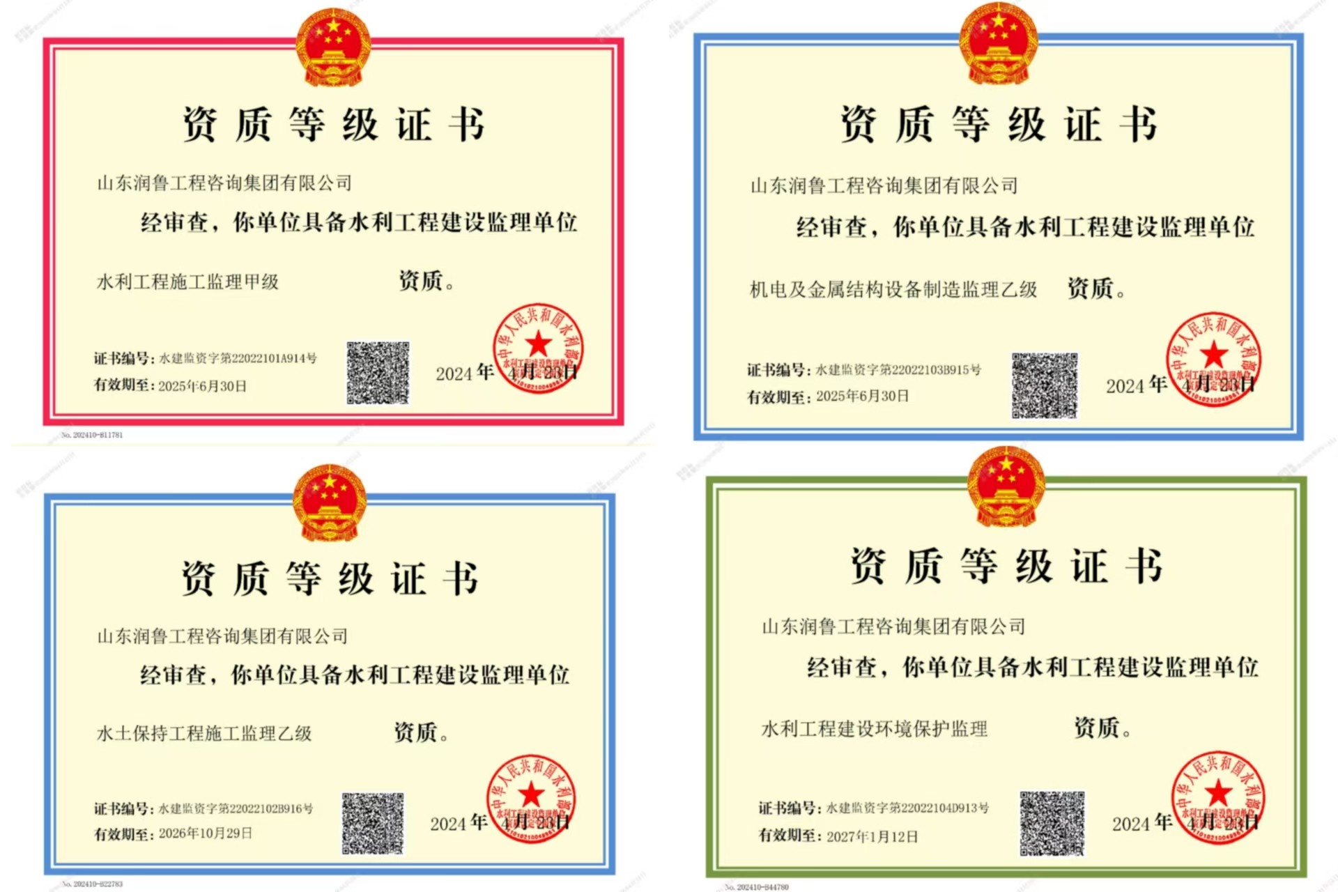 环亚登录入口(以下简称“山东润鲁集团”)成立于2014年9月,省管国有独资企业,由山东省环保发展集团有限公司一级平台公司山东省环保发展集团绿碳科技有限公司全资控股,拥有水利工程施工甲级、水土保持工程施工乙级、机电及金属结构设备制造乙级、水利工程建设环境保护不定级、山东省土地乙级等监理资质,为中国水利工程监理类AAA级信用等级企业,高新技术企业、科技型中小企业、创新型中小企业,山东省“专精特新”中小企业、济南市“专精特新”中小企业,济南市瞪羚企业,中国水利工程协会、中国水利企业协会、山东省建设项目环境监理协会会员单位,通过了质量、环境、职业健康安全管理三体系认证。